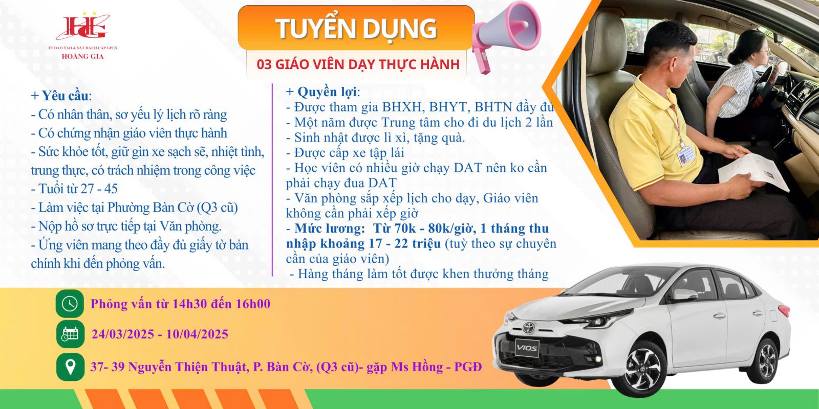 TRUNG TÂM ĐÀO TẠO VÀ SÁT HẠCH LÁI XE HOÀNG GIA THÔNG BÁO TUYỂN DỤNG